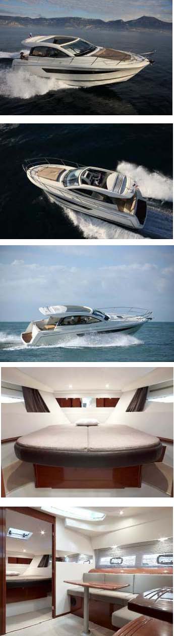 Jacht motorowy LEADER 10 Design: Garroni Design, JF De Premorel Concepts Unikalny design tej łodzi odpowiada za komfort, precyzyjną kontrolę i łatwość obsługi. Największy jacht z linii Jeanneau Cabin Cruisers charakteryzują nowe koncepty: innowacja, nowoczesne kształty, znakomite prowadzenie i zachowanie się na wodzie, wygoda na pokładzie i w znakomicie rozwiązanym wnętrzu.